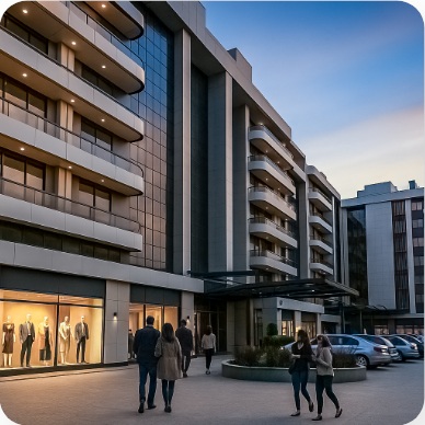 Yüksek dayanımlı beton sınıfı ve çağdaş bina otomasyon altyapısıyla güvenli, uzun ömürlü bir yapı standardı sağlar.